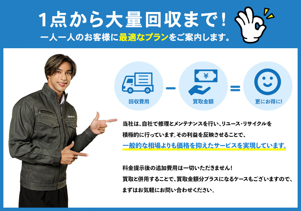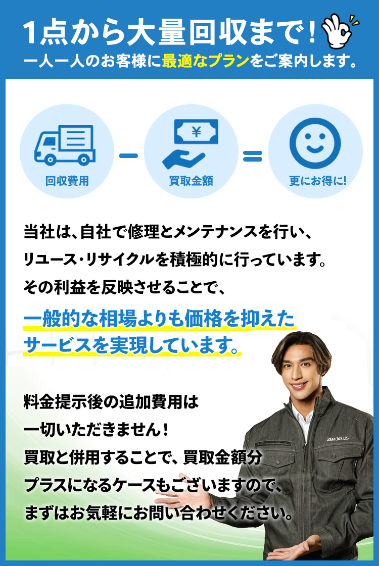 これによって処分費用を大幅に削減でき、その利益をお客様に還元することで低価格なサービスを実現しています。